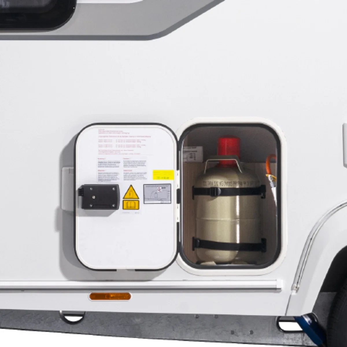 Exterior storage flap for gas bottle